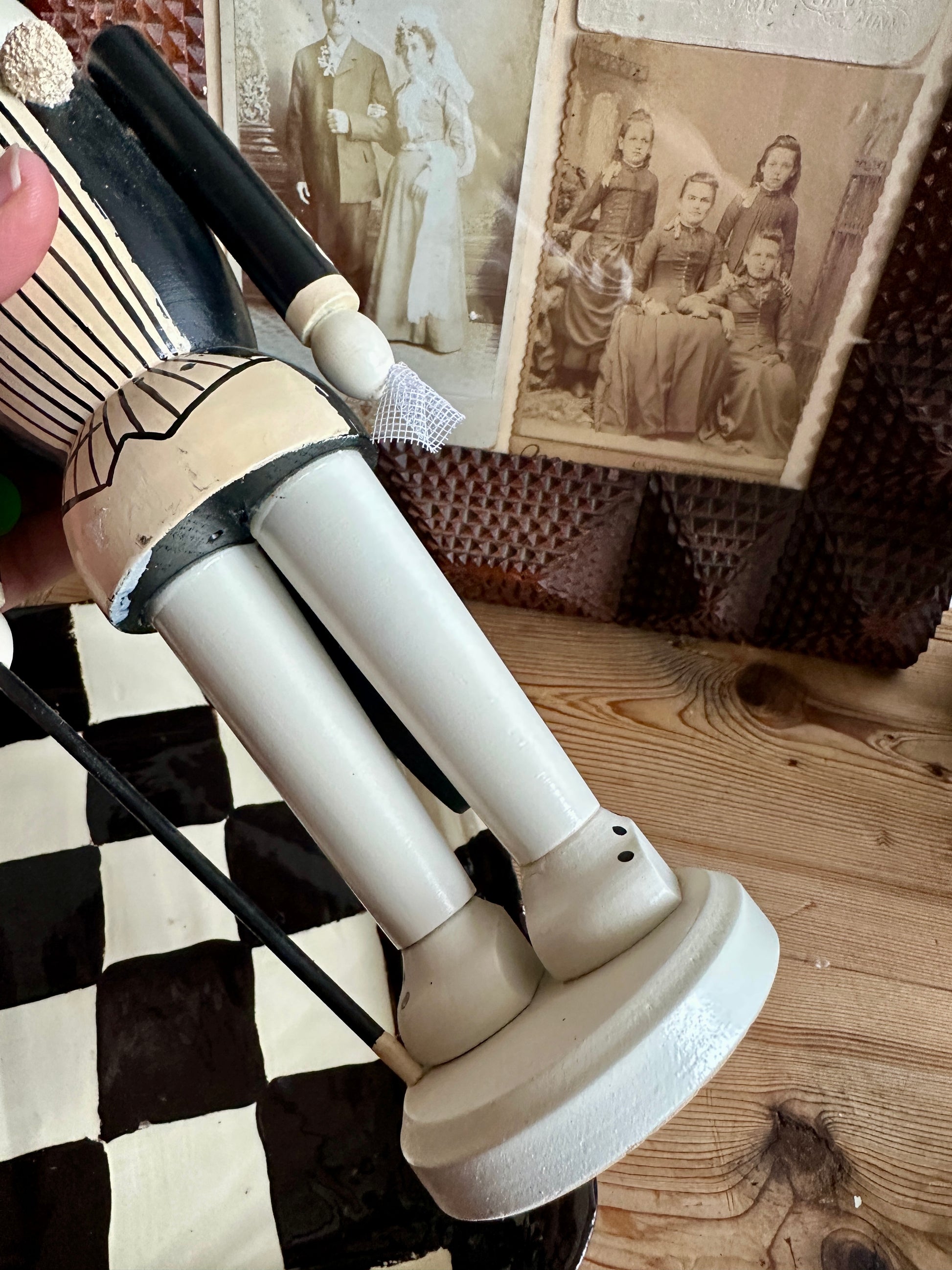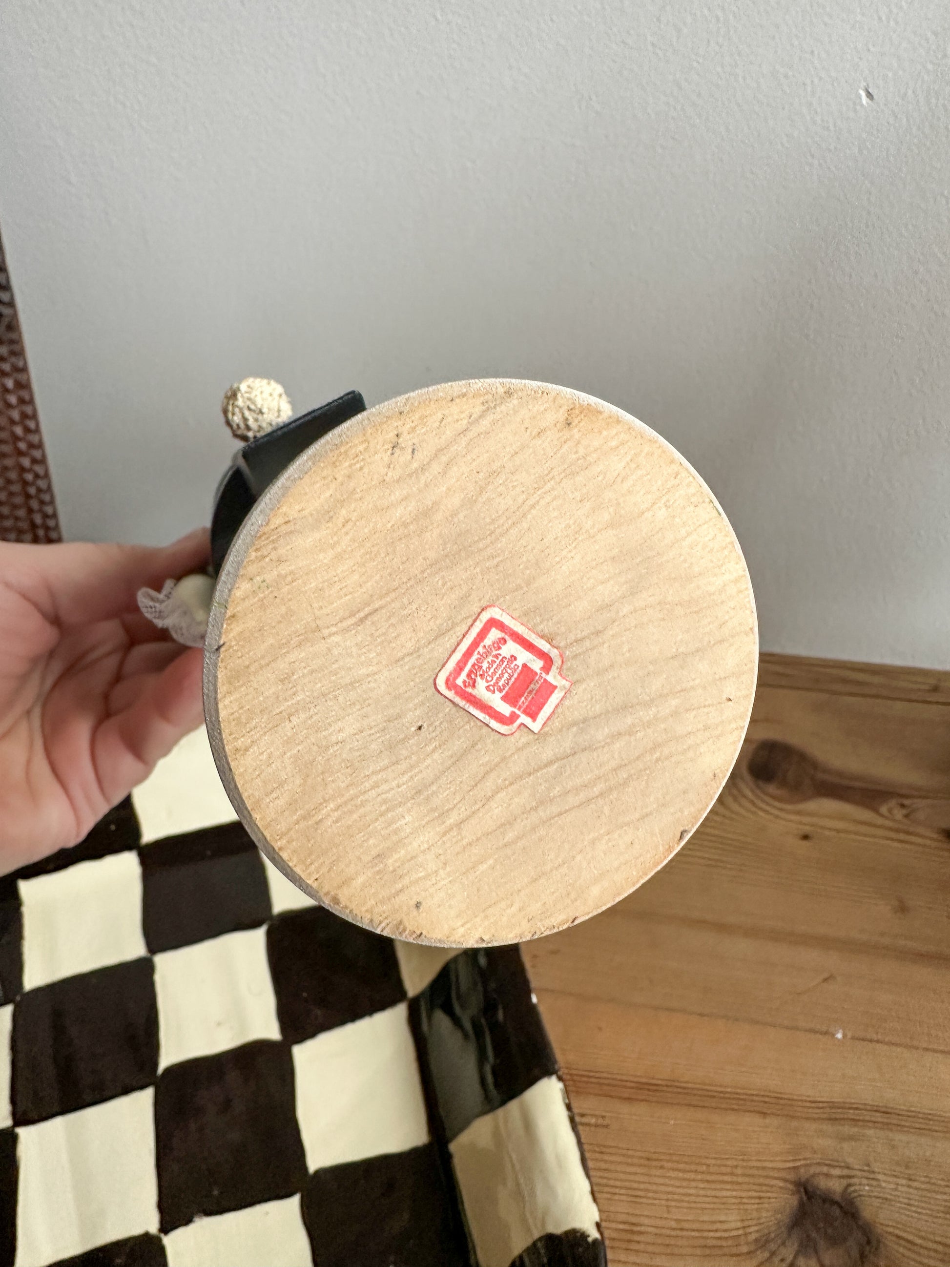 Vintage wooden rabbit nutcracker. Made in Germany by Erzgebirge. Love the details on this guy- hand painted, top hat with ears, handkerchief in his left hand and a cane in his right, bow tie, and a little tuft of fur on his chest.