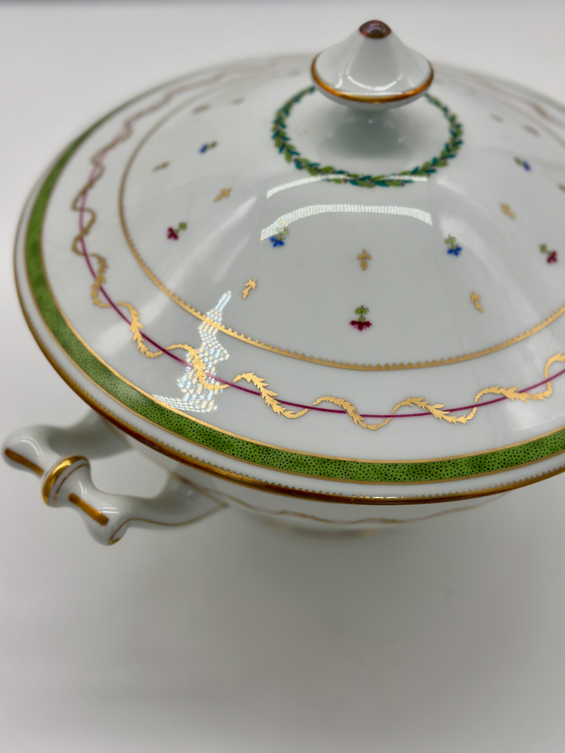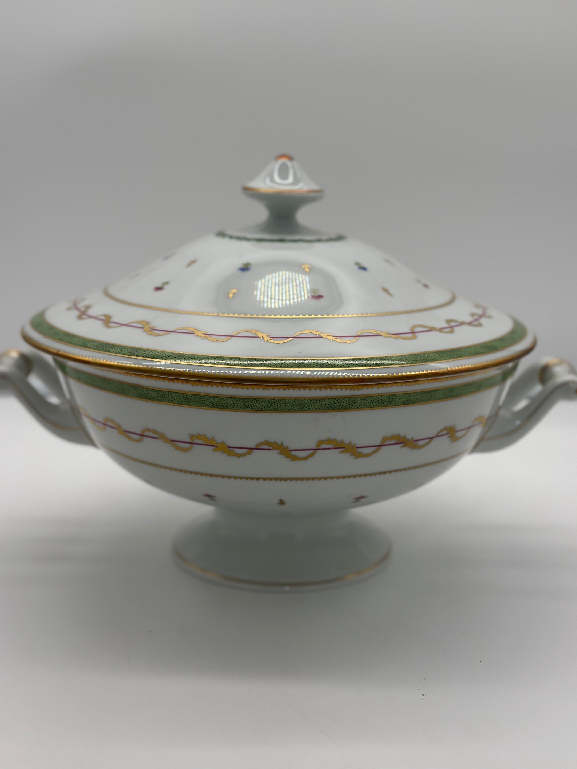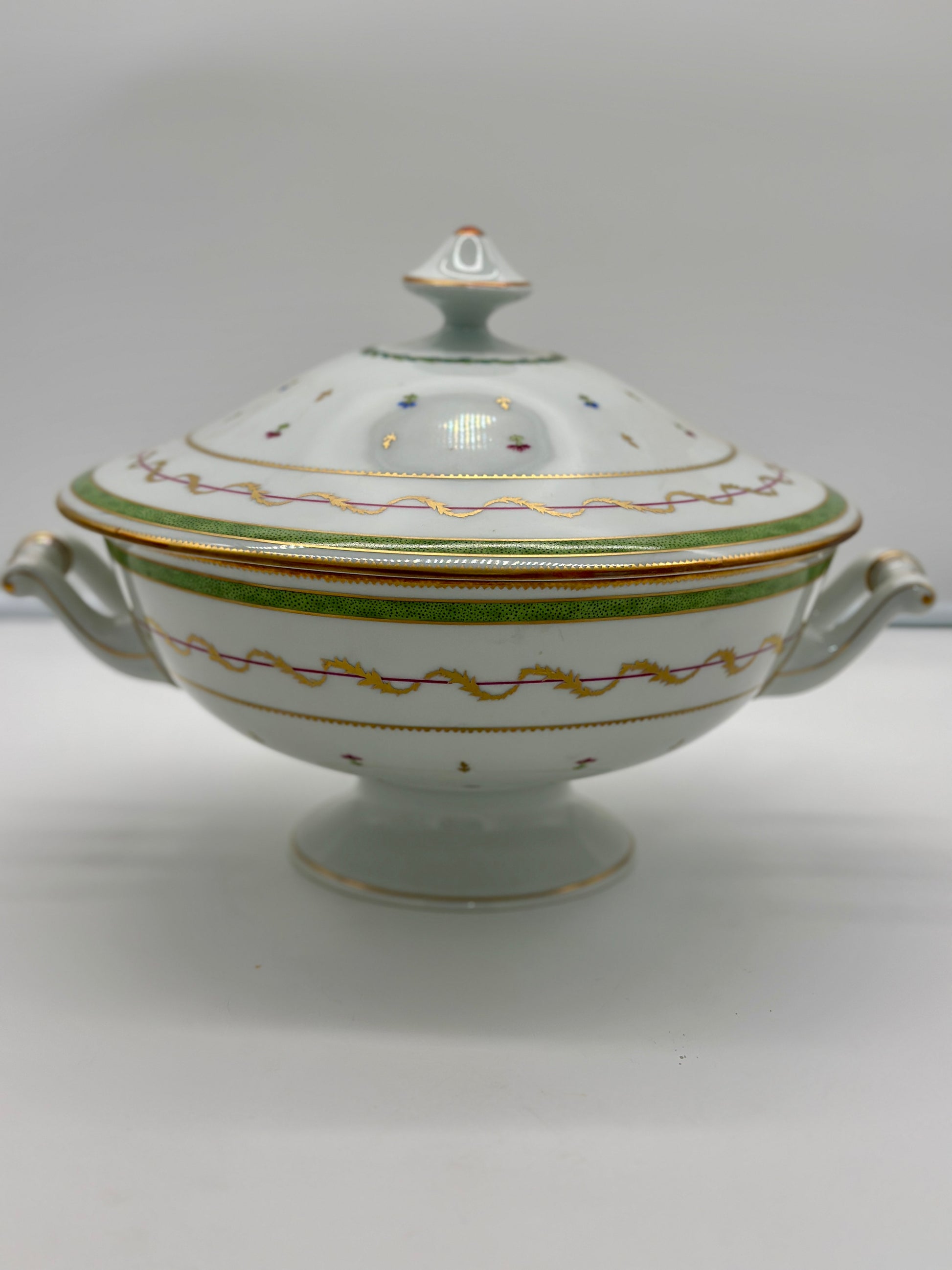 Covered tureen by Haviland Limoges. Gorgeous Vieux Paris pattern with gold trim details. This vintage piece is in very good condition, no chips or cracks. From a beautiful Tennessee estate. Smoke & pet free.