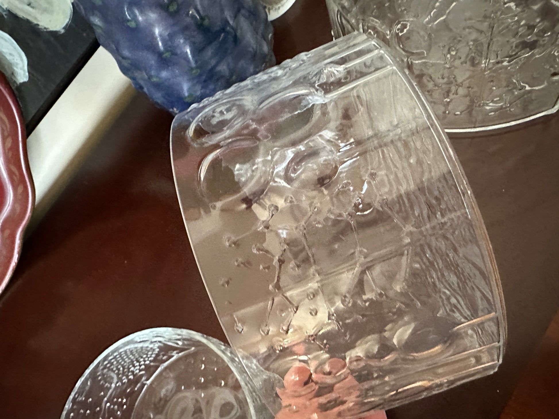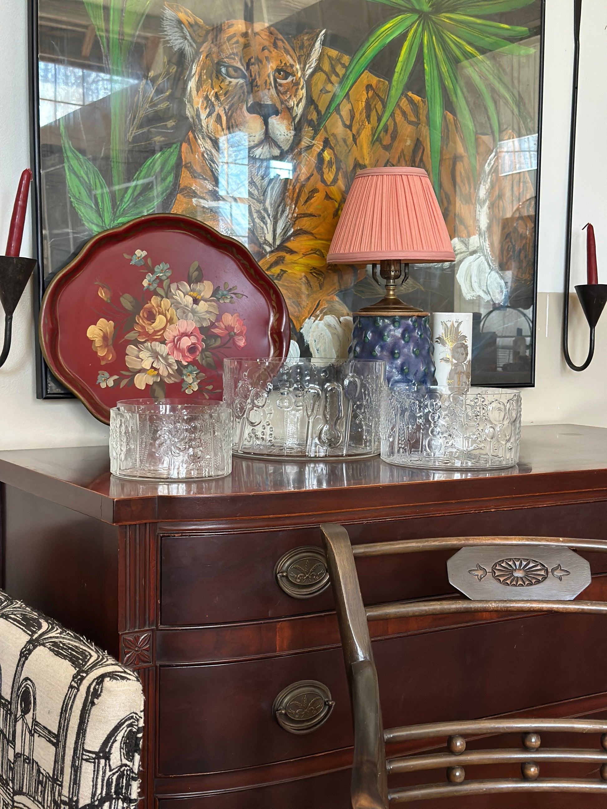Set of 4 glass bowls. 3 are nesting and an additional small size bowl for a total of 4 bowls. Glass design by Oiva Toikka. Made in Finland. 1960s. No chips or cracks. Smoke & pet free estate item. Please see pictures closely. The 2 smaller bowls are not identical in pattern. Also one bowl is thinner glass than the other. Large 9.5d x 5.5"h Medium 7.75"d x 4"h (2) Small 6"d x 3.25" h