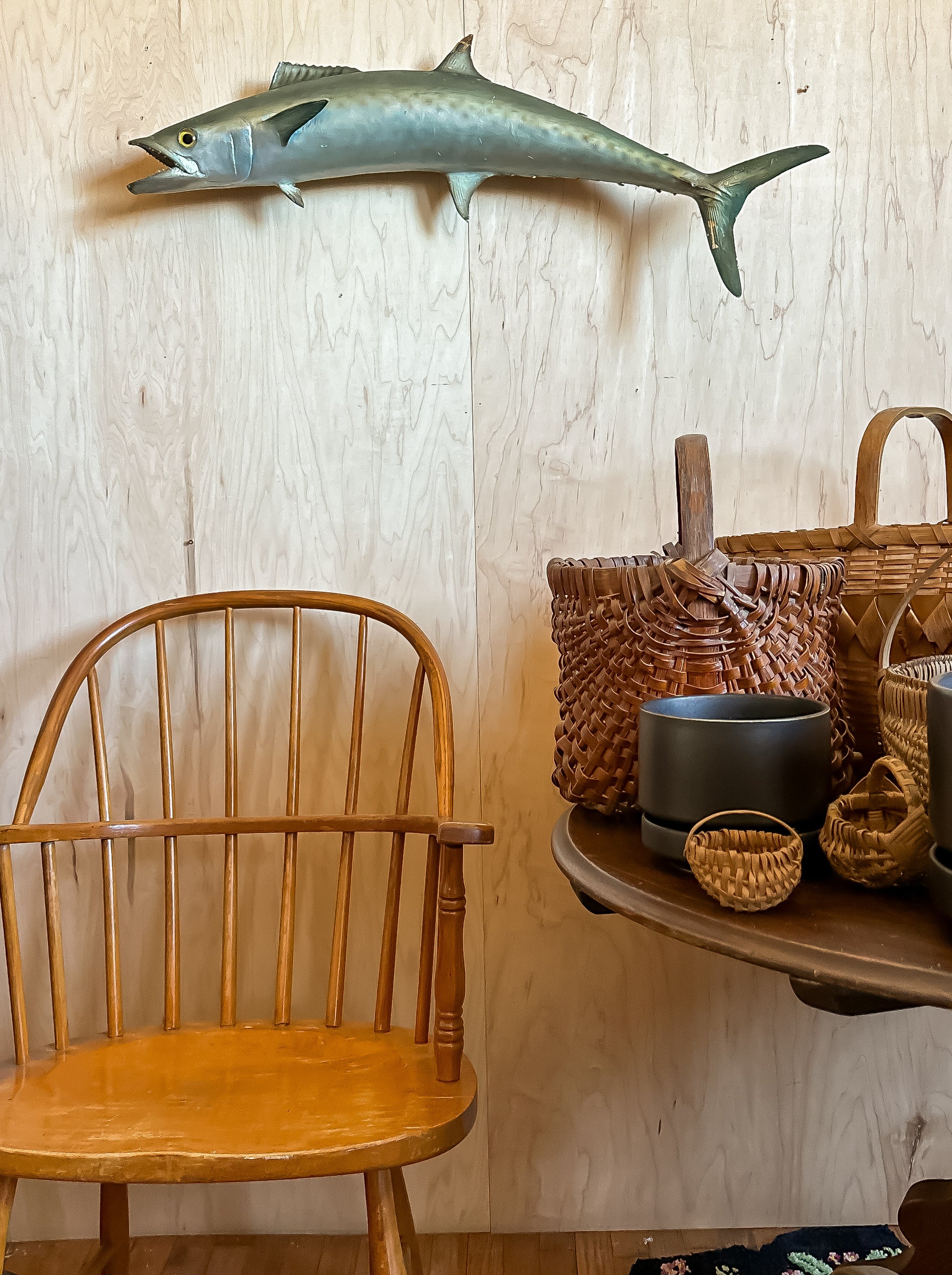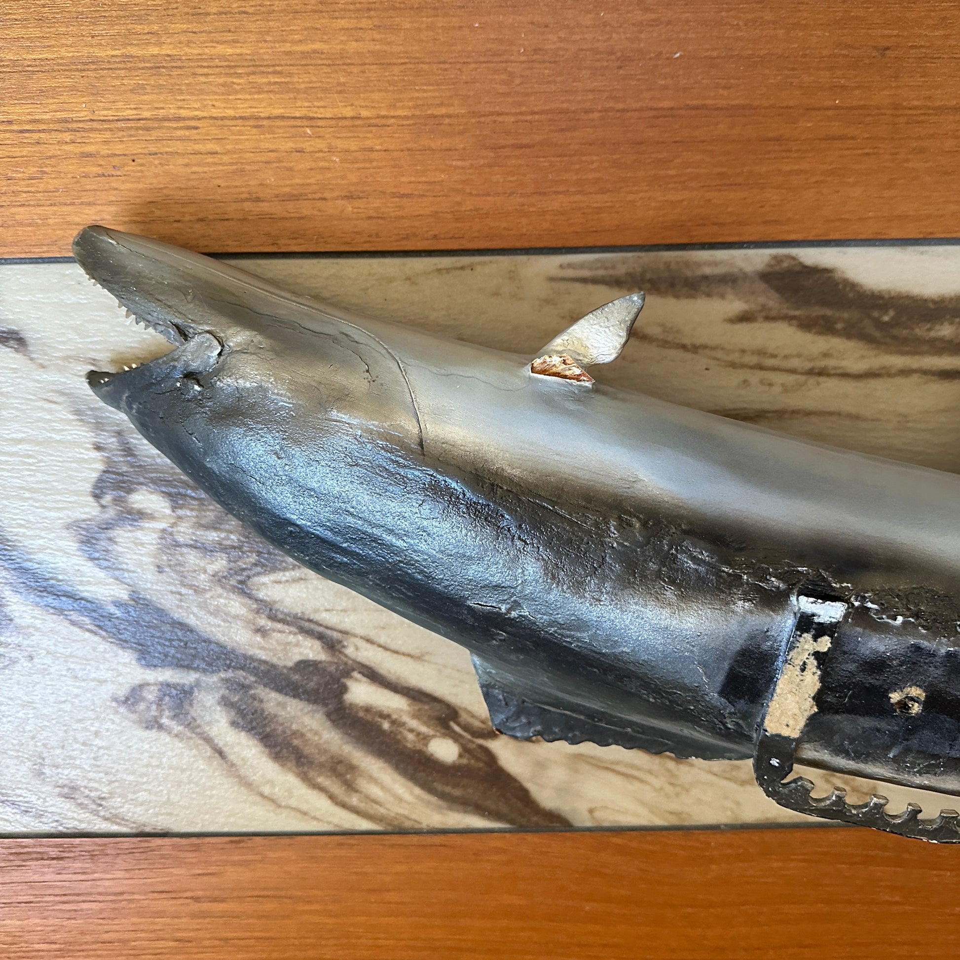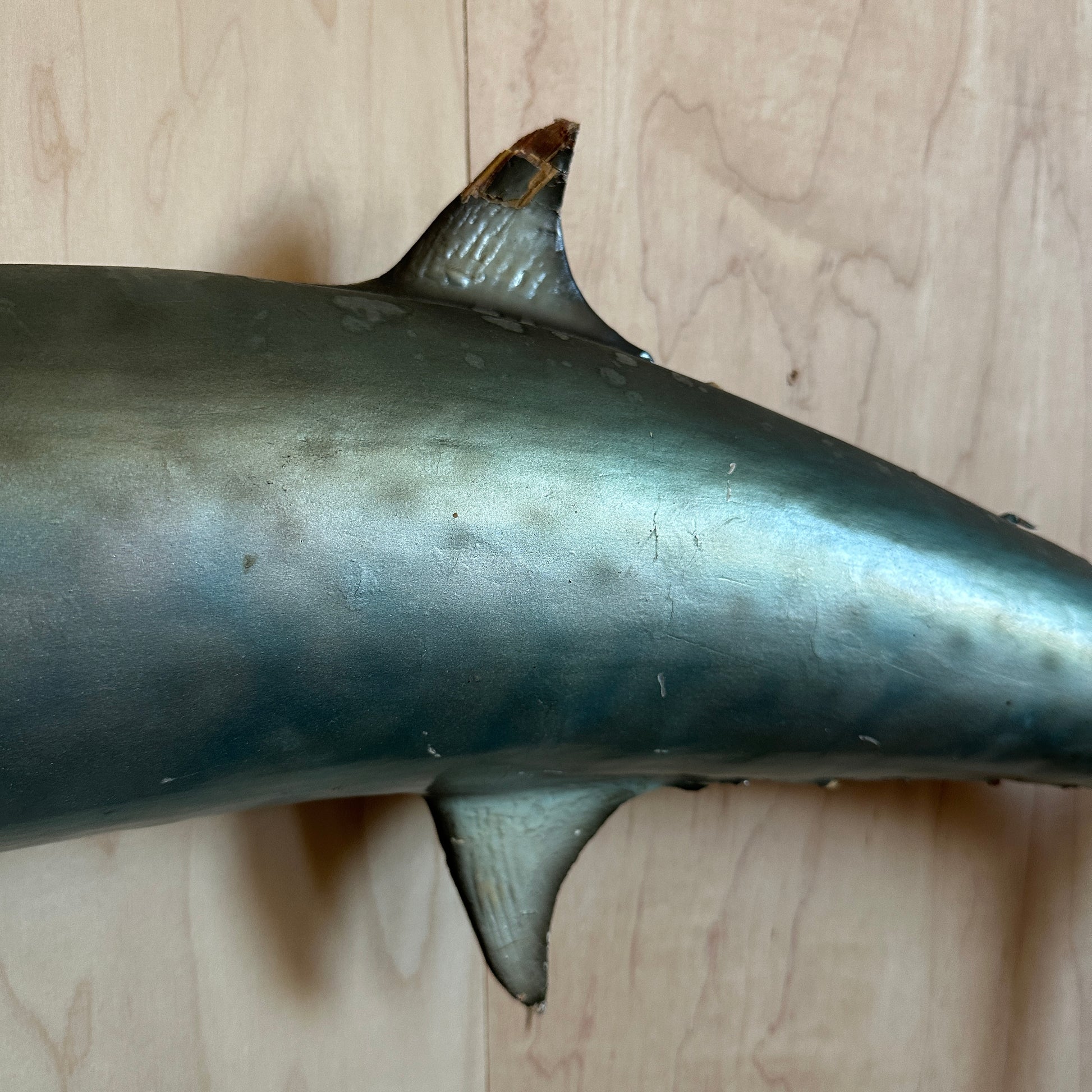 Mounted taxidermy replica Kingfish. 34" length. Hanger in back. Some loss of color & condition issues to fin & tail.