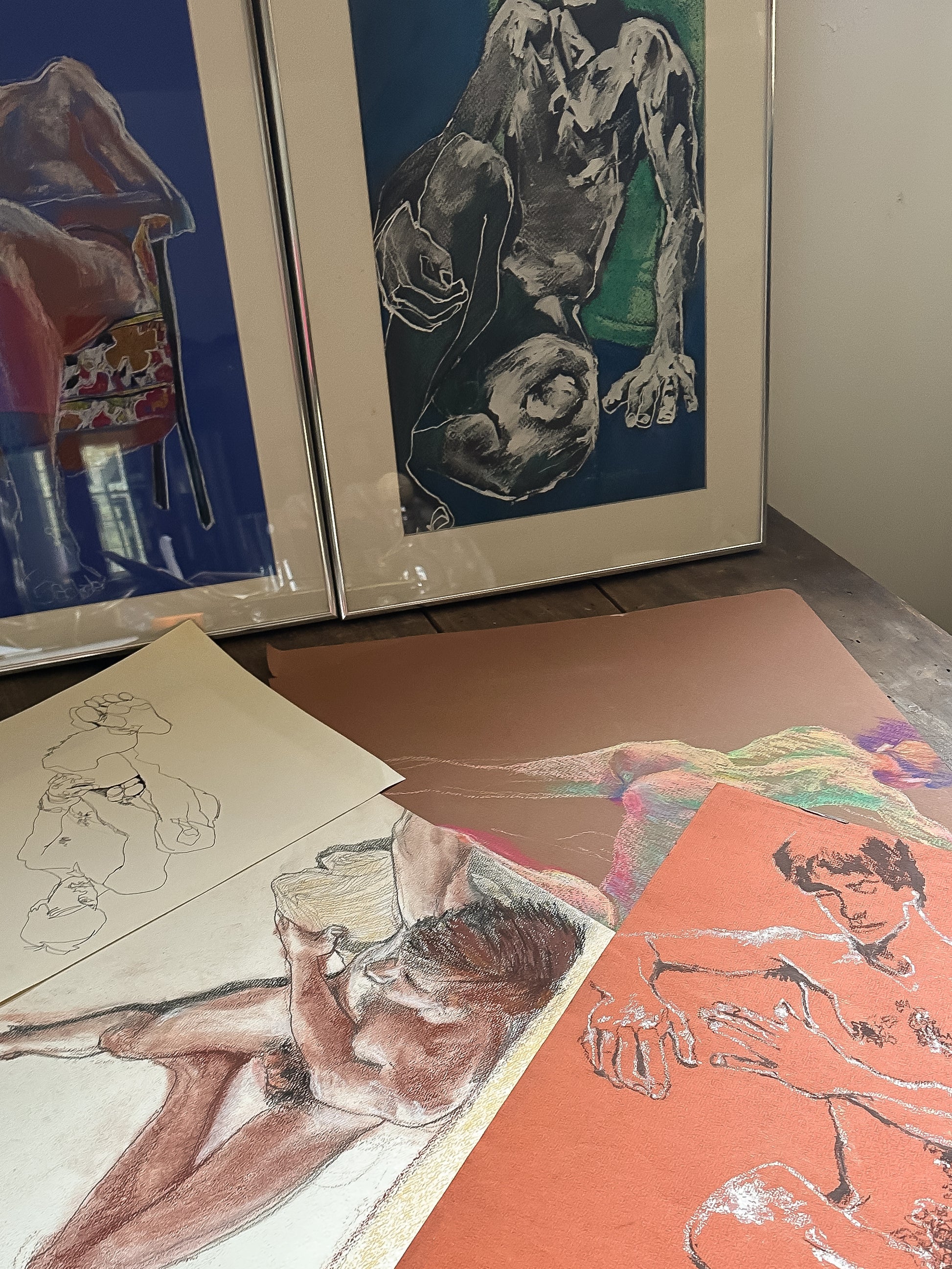 Pastel rainbow male figure on paper. Unsigned. By artist H Neumann. 26.25" x 20"